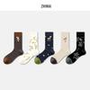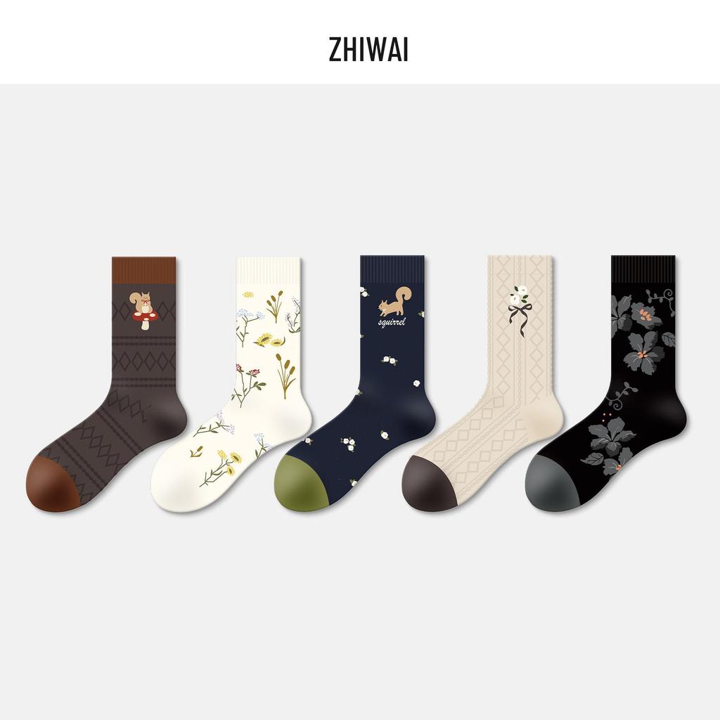 Damen Blumen Schleife Mid-Calf Socken - 5 Paar, Retro & Trendiges Color-Block Design