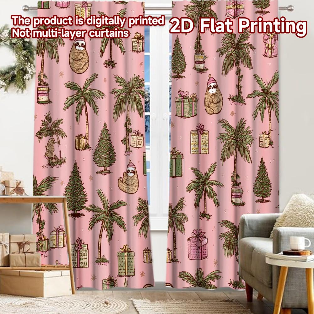 2pcs, 2D FLAT PRINTING Curtains (Without Rod) Holiday Sloths Modern Fashionable Curtainments Versatile Polyester Curtains