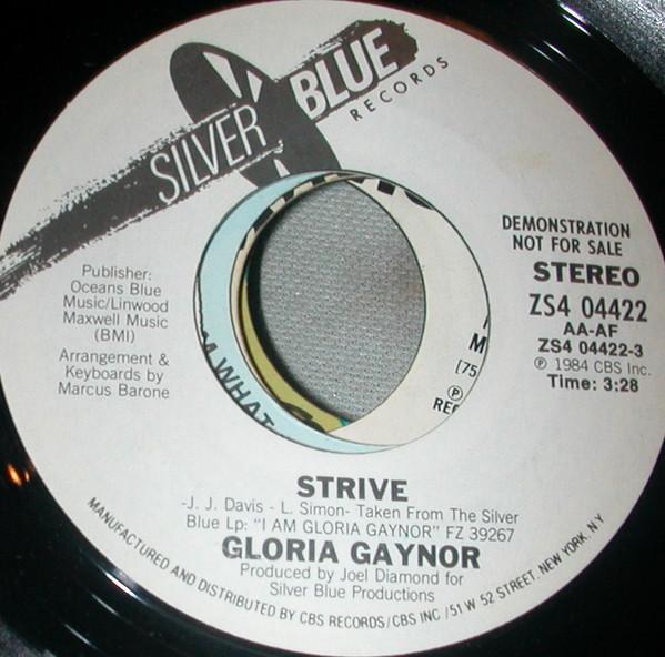 7inch Record GLORIA GAYNOR - Strive ZS404422PROMO Silver Blue Rec 1984 Canada Dance & Electronica Used