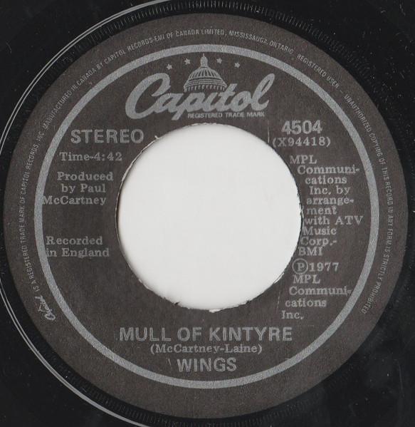 7inch Record WINGS (2) - Mull Of Kintyre 4504 Capitol Records 1977 Canada Rock Used