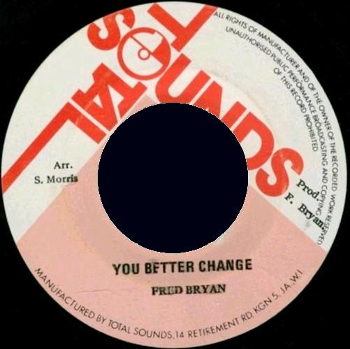 7inch Record FRED BRYAN - You Better Change NONE Total Sounds Jamaica Reggae, Ska & Dub Used