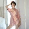 Sexy pajamas boyfriend wind lace-up medium-sleeved transparent shirt pajamas seduce passion home private room bed