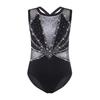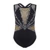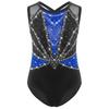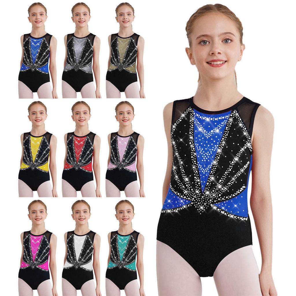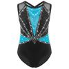 Mädchen Tanz Gymnastik Turnanzug Ärmellos Überkreuzter Rücken Glänzende Strasssteine Farbblock Performance-Kleidung