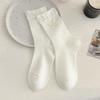 Bow Lace Miu Cartoon Off-White Mid-Calf Socks with Wood Ear Trim - Autumn Trendy Accessories