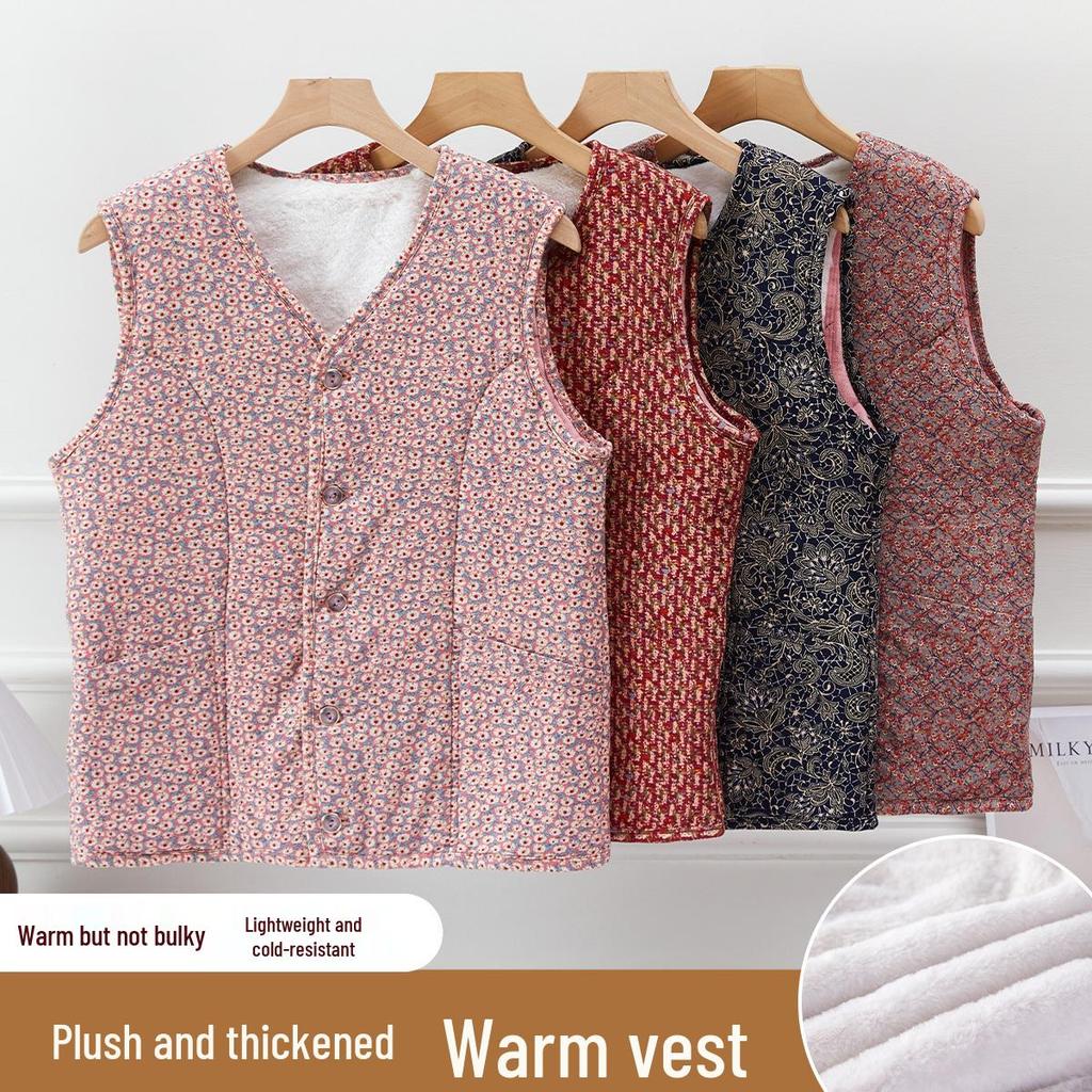 Warme, mit Fleece gefütterte Baumwollweste für Frauen mittleren und höheren Alters, perfekt für Mütter und Großmütter