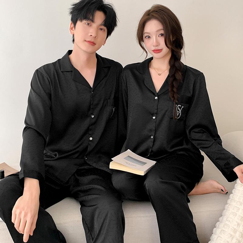 Pyjama-Set aus Eisseide: Luxuriöse Damen- und Herren-Langarm- und Hosen mit Jacquard-Design für Frühling und Herbst
