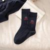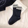 Damen Retro Kirsche gekämmte Baumwolle Mid-Calf Socken mit gestreifter Spitzenrüsche - Herbst/Winter Japanischer Stil.