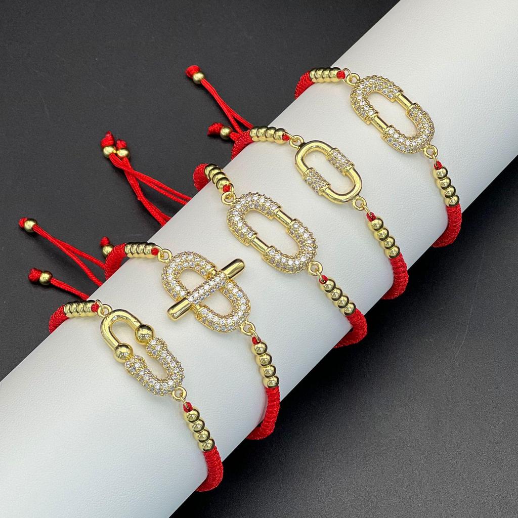 Rotes Kordel Zirkon O-förmiges Armband, Kordelzug T-Stil Modeaccessoire