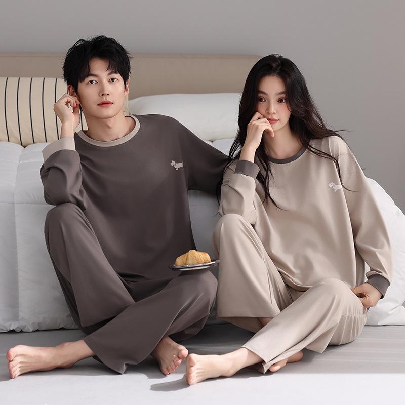 Damen Pyjama-Set aus gerippter Baumwolle - Langarm, lange Hose, sportlich-lässig, Herbststil, auch draußen tragbar