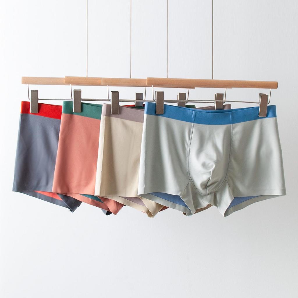 Modal Men's Mulberry Silk Color Block Seamless Boxer Briefs - Mid-Rise.