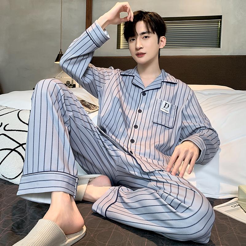 Men's Long Sleeve Cotton Pajama Set - Plus Size, Wearable Outdoors, Lightweight for Spring, Autumn, and Winter