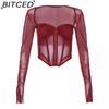 BITCED Autumn Women's Solid-Colour Slim-Fit Cropped Streetwear Square-Neck Long-Sleeved Top