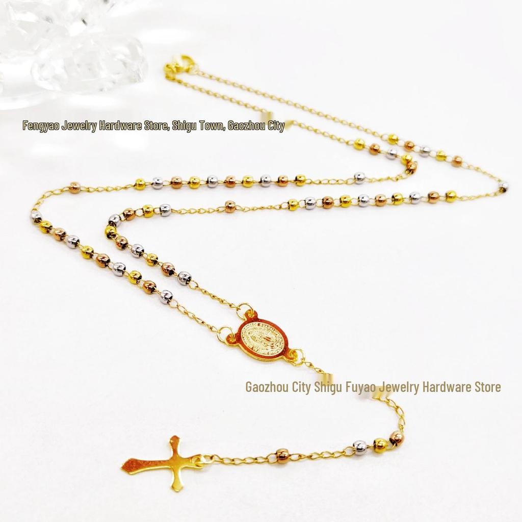 3M Goldene Rose Stahl Halskette: Elegantes dreifarbiges Design mit runden Perlen