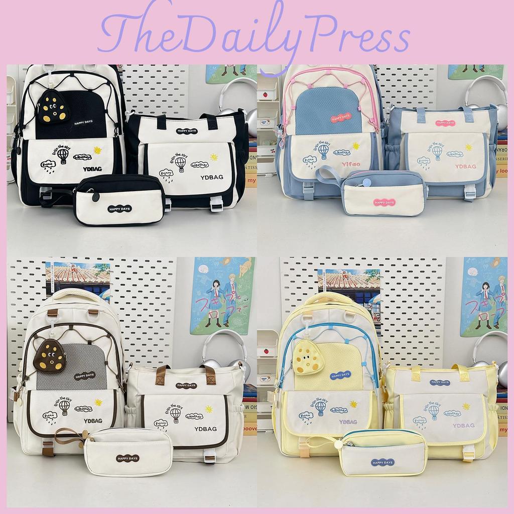Cartoon Embroidery Letter Student Lightweigh Backpack Three Piece For Use School