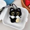 Big-Eyed Black Cat Plush Squeaky Toy Keychain - Cute Bag Charm