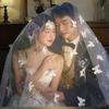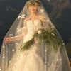 Mori Style Wedding Dress with 3D Butterfly Veil, Elegant Pearl Headpiece, and Soft Yarn Fishtail Train