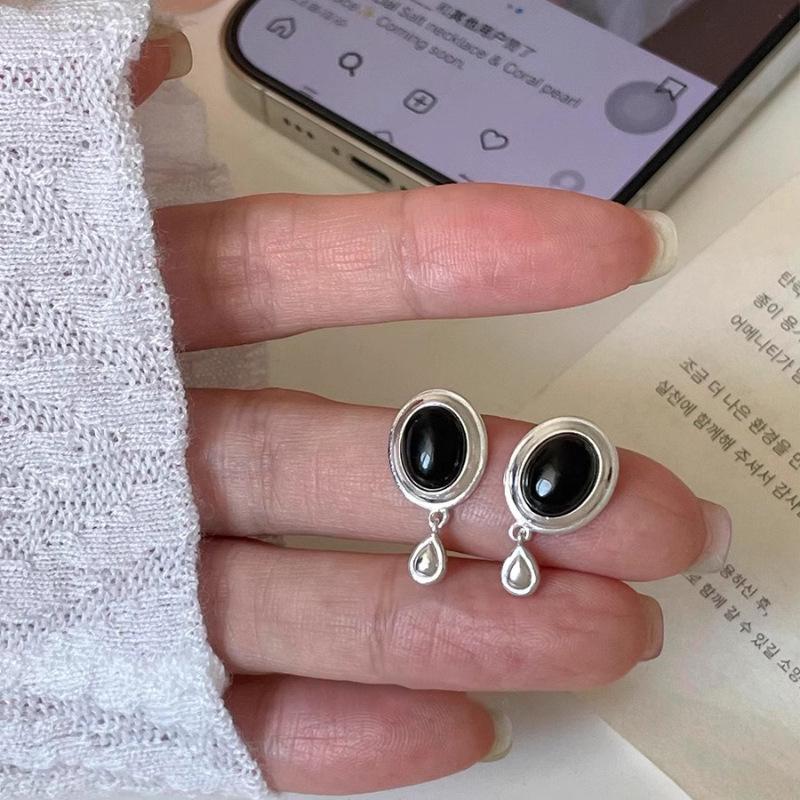 Schwarzer Achat Tropfen Zirkon Ohrstecker - Elegant, Vielseitig, High-End Design