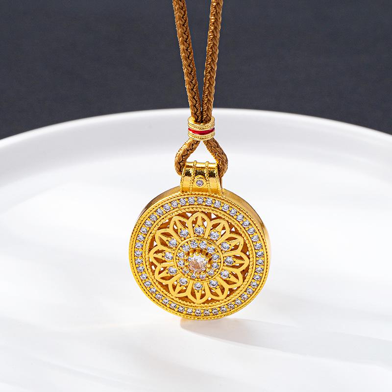 Vietnamesische Ethnische Retro Rosen Anhänger Halskette mit Eingesetzten Diamanten, Gold Finish, Lang Anhaltende Farberhaltung.