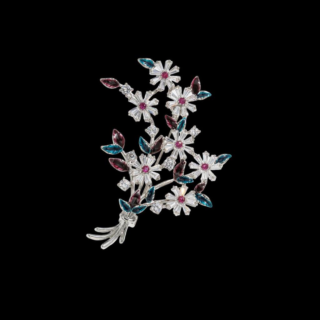 Exquisite Silberner Blumenstrauß Brosche: Elegantes Valentinstagsgeschenk