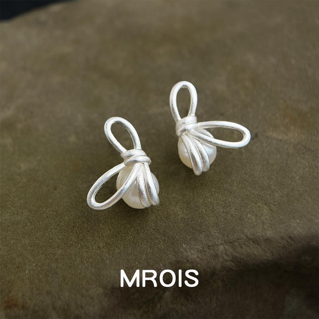 Originale matte Schleife Süßwasserperlen Ohrstecker - Eleganter minimalistischer Stil mit s925 Silbernadel.