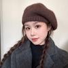 Mohair Große Kopfmütze Herbst und Winter Damen Warm und Modisch Vielseitige Woll-Barett Koreanischer Stil Gesicht zeigend Kleine Malermütze