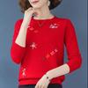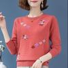 Women's Crew Neck Sweater Embroidered Loose Pullover Knitwear Soft Stretch Knit Top Spring Autumn