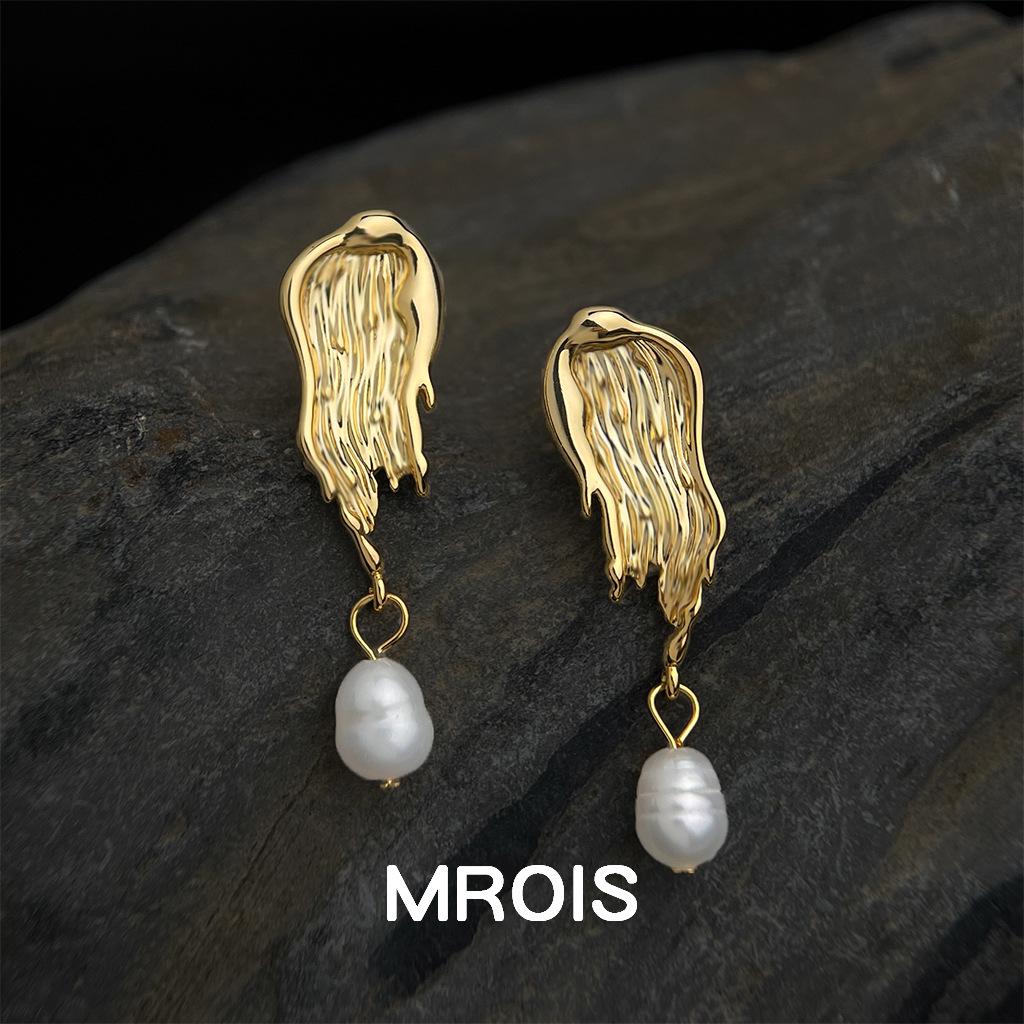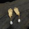 18k Vergoldete Süßwasserperlen-Ohrringe mit Ölfarben-Textur - Leichter Luxus-Stil