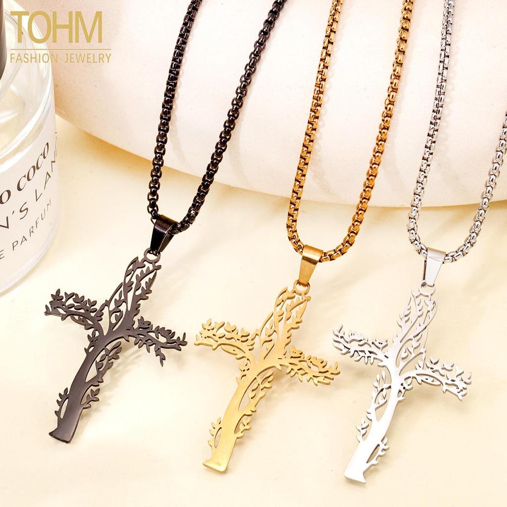 TOHM Titanium Steel Tree of Life Cross Pendant Men's Hip-hop Stainless Steel Necklace