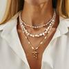 Bohemian Conch Pearl Beaded Clavicle Chain INS Style Bowknot Pendant Necklace for Women Daily Beach Vacation Party Jewelry Accessories