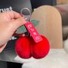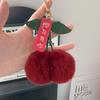 Schicker Kirschanhänger: Rexkaninchenfell Schlüsselanhänger mit Plüschkugel-Anhänger