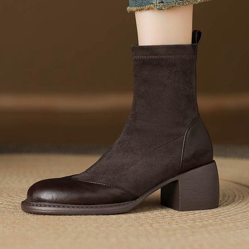 Krazing Po Microfiber Flock Winter Round Toe Size 33 Chelsea Boots Size 43 Zipper Thick High Heels Elastic Ankle Boots