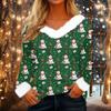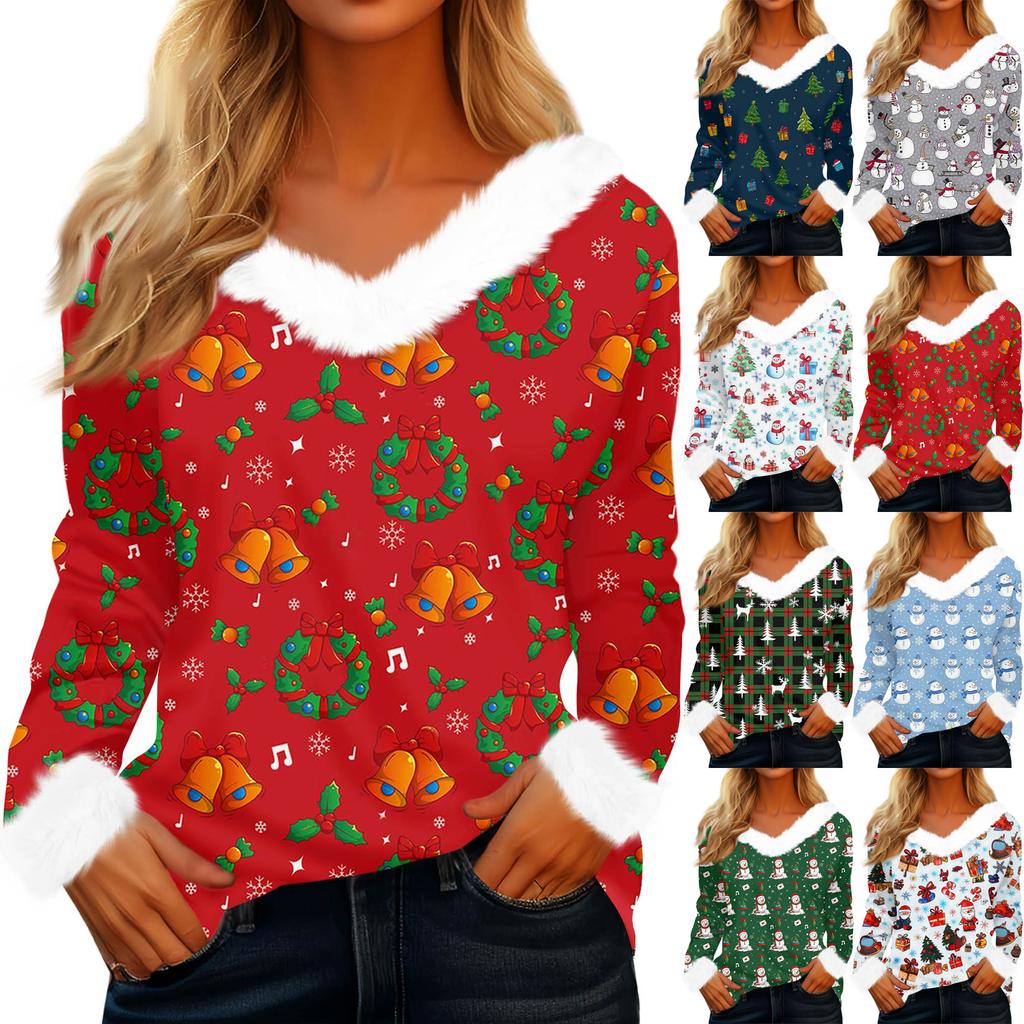 Damen Modisches Lässiges V-Ausschnitt Weihnachts-Print Langarm-Oberteil