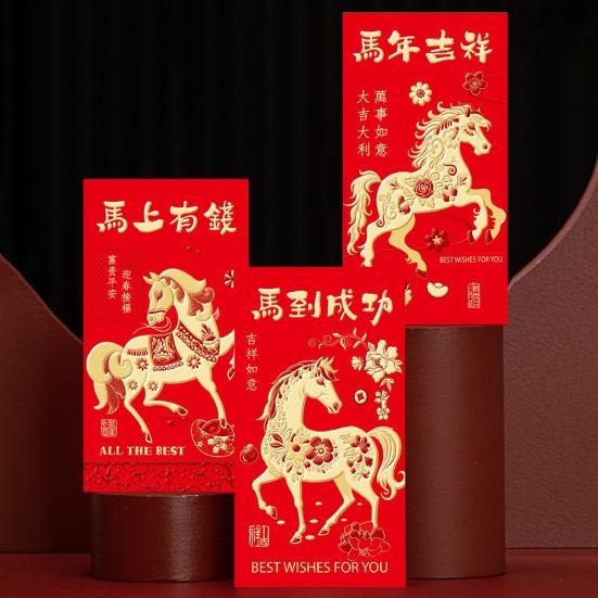 6 Pcs 2026 Chinese New Year Red Envelopes Year of The Horse Red Envelopes Cartoon Horse Lucky Money Pocket for Spring Festival