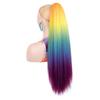 Pferdeschwanz Haarverlängerung Lang Yaki Glattes Haar Pferdeschwanz Regenbogenfarbe Haarteil Krallenclip zum Anbringen Haarteil für Damen