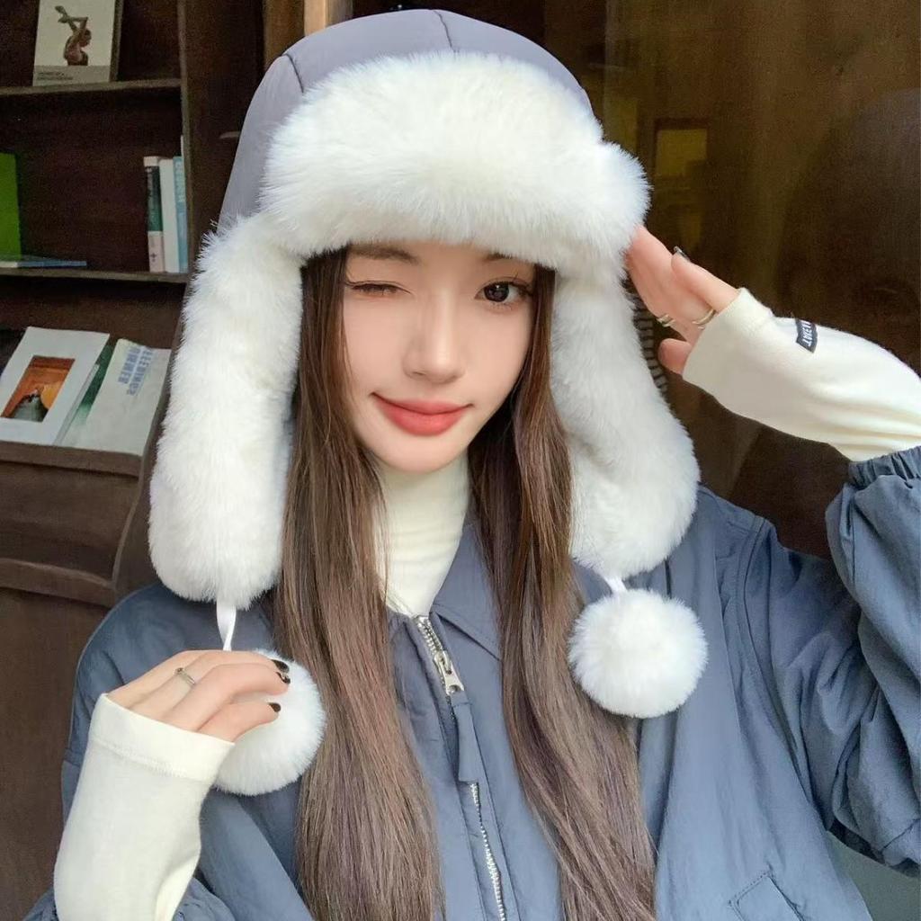 2025 Damen Verdickte Warme Daunen Lei Feng Mütze für Herbst & Winter, Vielseitig, Plüsch, Großer Kopfumfang.