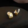 18k Gold Geometrische Zirkon Perlen Ohrstecker - Eleganter Französischer Stil, Vielseitiges C-förmiges Design