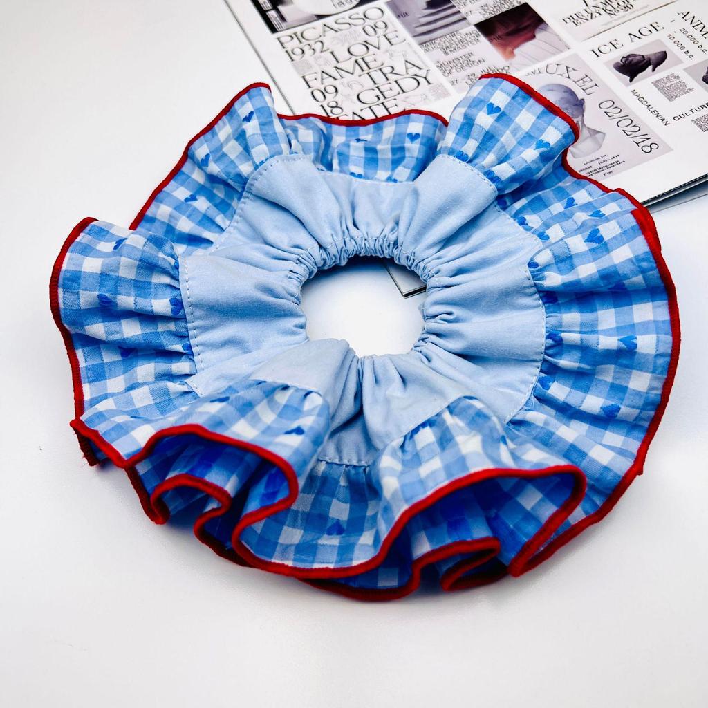 Academy Style Mehrschichtiger Karostoff Scrunchie für Mädchen - Vielseitiges Großes Haaraccessoire