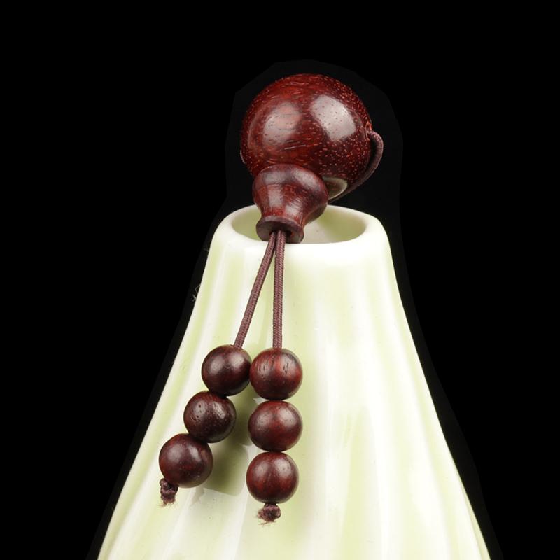 Armband aus grübem Ebenholz und rotem Sandelholz mit Buddha-Kopf, Kürbisanhänger und Vajra Bodhi-Accessoires.
