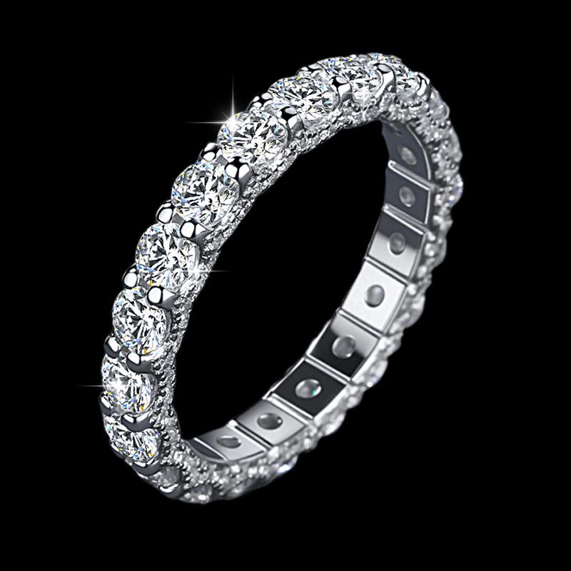 S925 Sterlingsilber Damen Moissanit Pavé Ring mit Diamantenreihe - Leichter Luxus Modering