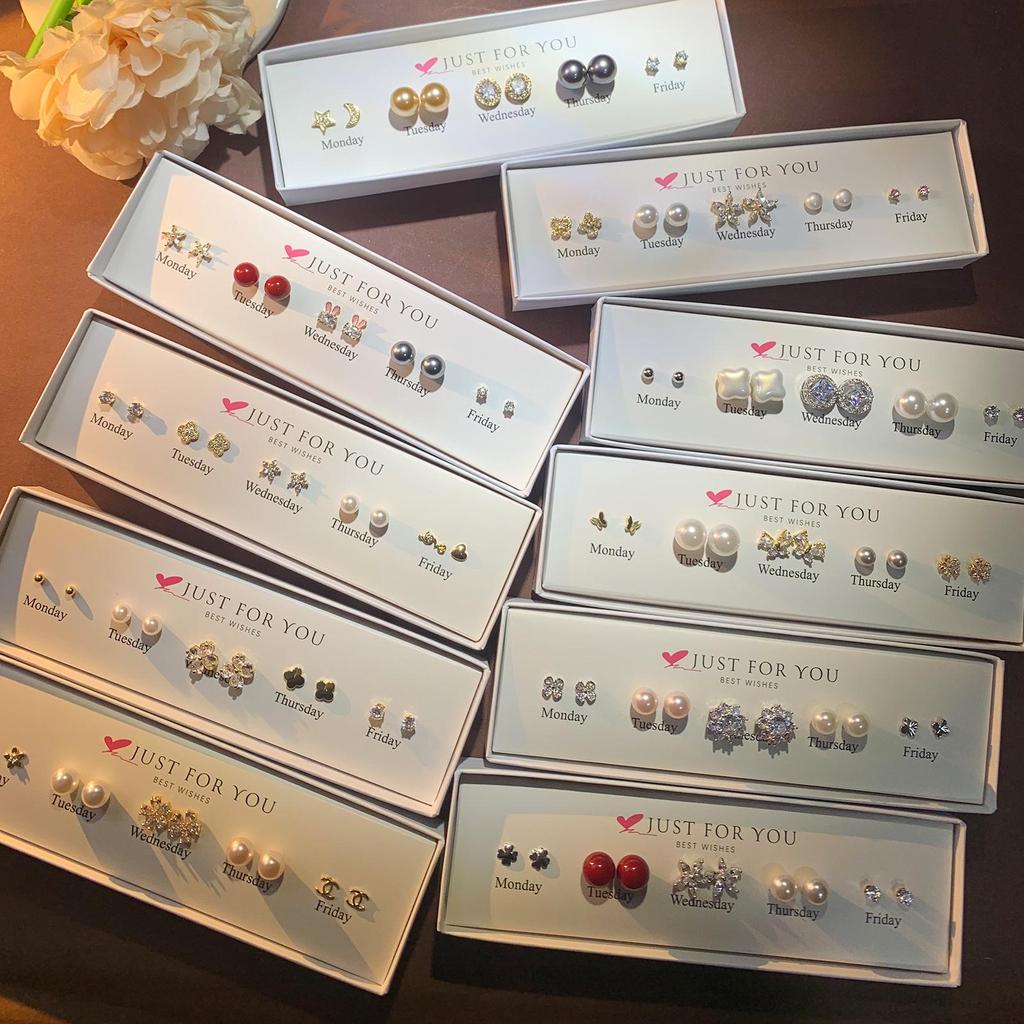 Zirkon Blume & Perle Herz Ohrstecker Set für Damen