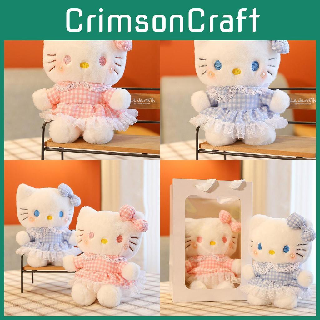 Plush Stuffed Doll With Checkered Dress And Bow Decor For Kids Gift