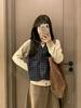 Damen Retro Winter Plaid Weste & Pullover Midi Rock Set 2025