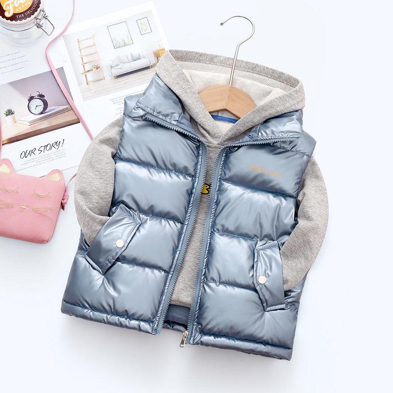 Waschfreie glänzende Daunenweste für Jungen und Mädchen mit Stehkragen - Herbst/Winter