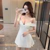Sexy Spaghettiträger Tief ausgeschnittenes A-Linien-Kleid – Taillenbetonend Großer Schwung Nachtclub-Kleidung