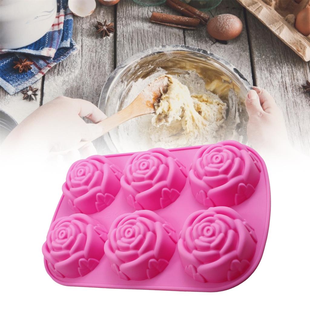 Kuchenform 3D Wiederverwendbar 6-Mulden Antihaft Rosenblütenform Fondantform Für Küche Silikon