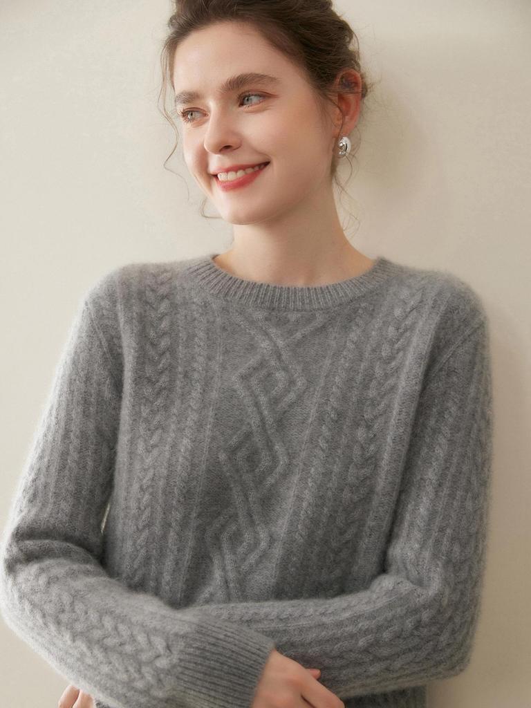 Women's Cashmere Cable Knit Sweater: Round Neck, Thickened, Versatile Autumn/Winter Casual Fashion