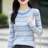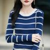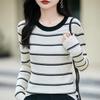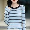 Women's French Color Block Striped Knitwear: Korean Style Long Sleeve Slim Fit Base Sweater