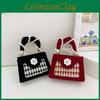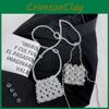 Handwoven Beading Lady Girl Travel Mini Bag Pearl Decor Magnetic Closure Flap
