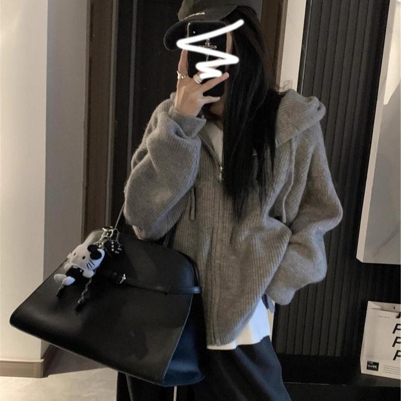 2025 Damen Koreanischer Stil Kapuzenpullover mit Reißverschluss: Herbst/Winter Strick-Cardigan Sweatshirt Mantel mit High-End-Appeal