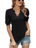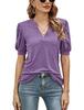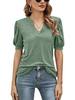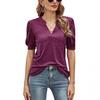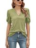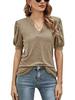 Damen Sommer V-Ausschnitt Puffärmel Lockeres T-Shirt - Einfarbig, Casual-Stil